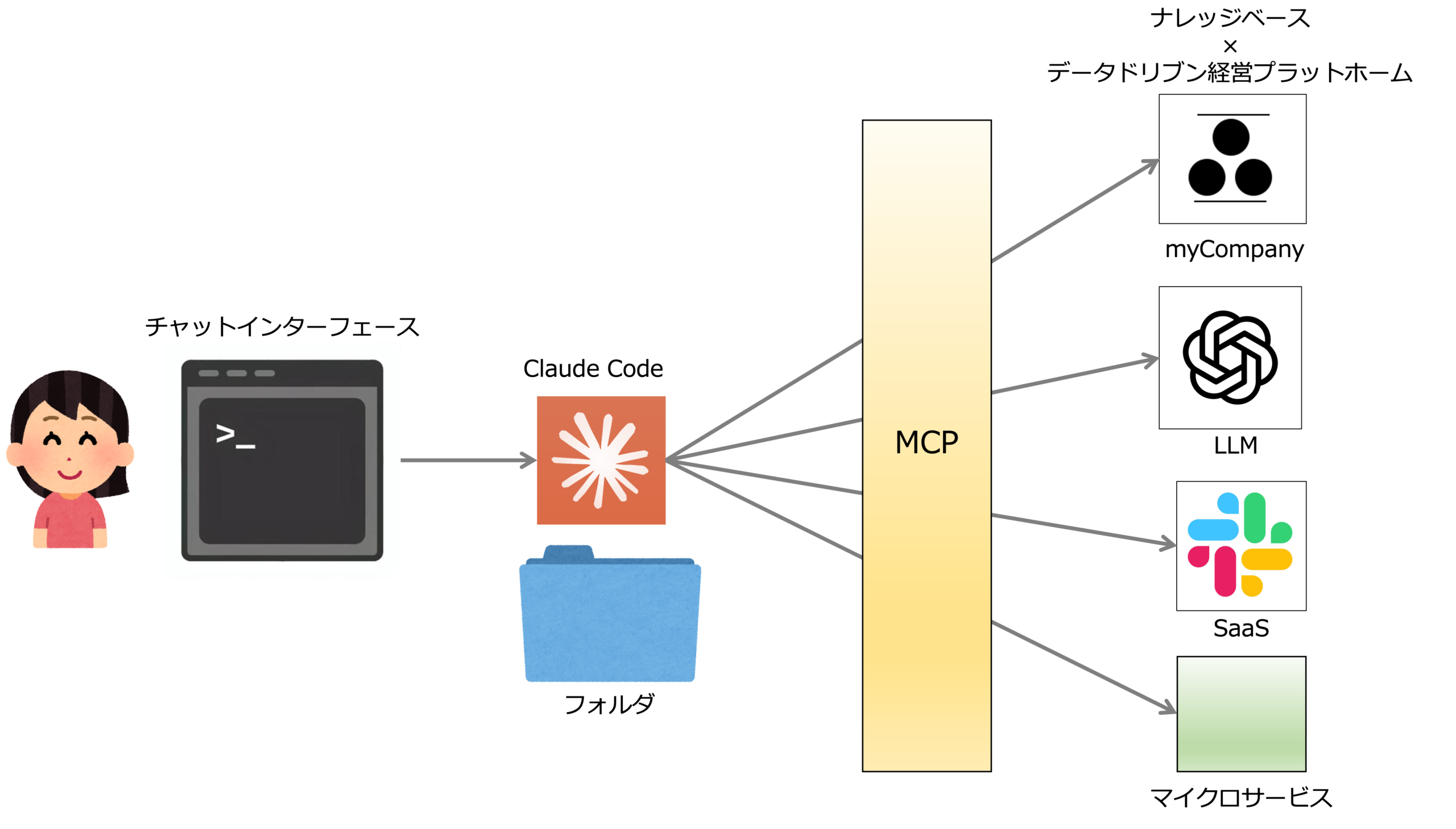 本サービスは、ナレッジベースを活用したデータドリブン経営を実現するための経営プラットフォーム、myCompanyを導入していただき、企業のメンバーやAIエージェントが共創し、自律的に仮説検証を繰り返すことで、企業を学習し進化する組織にしていただくためのサービスです。
