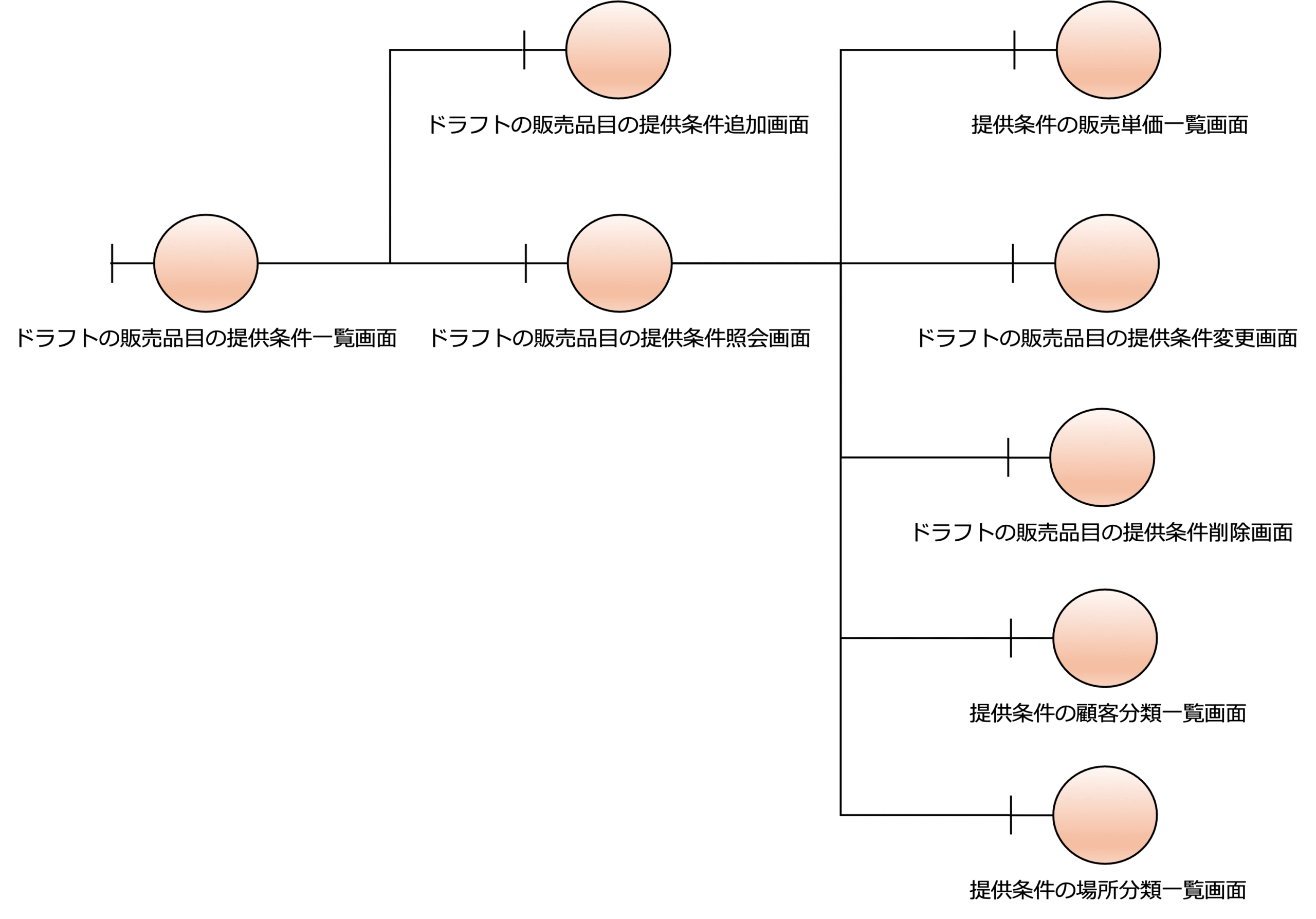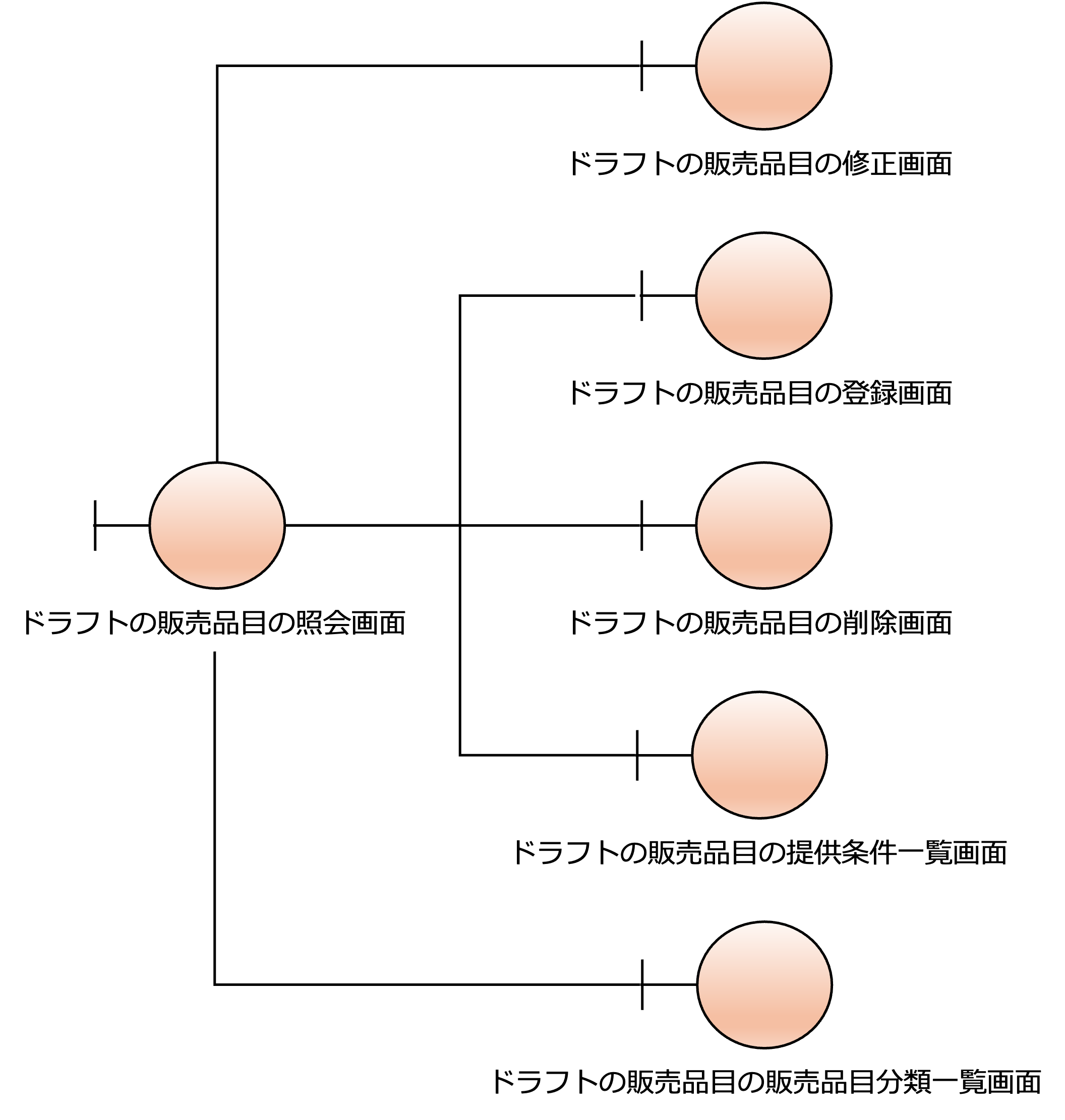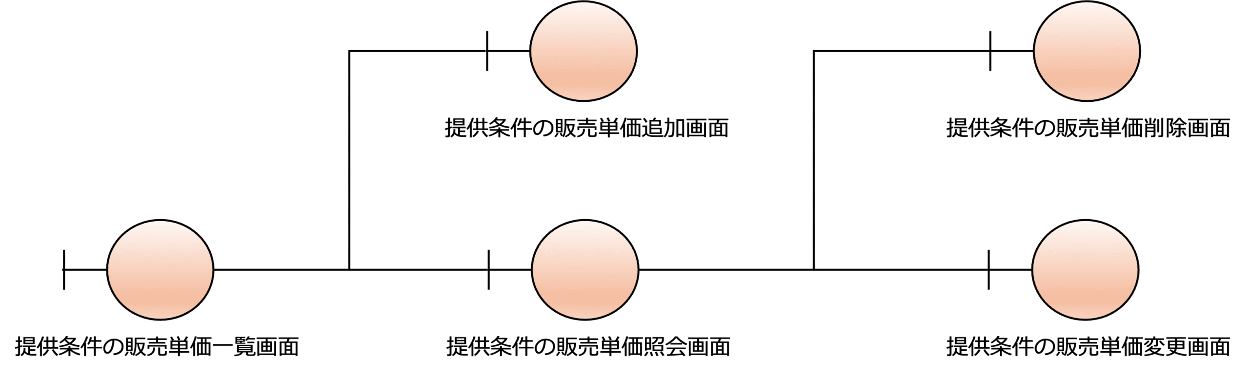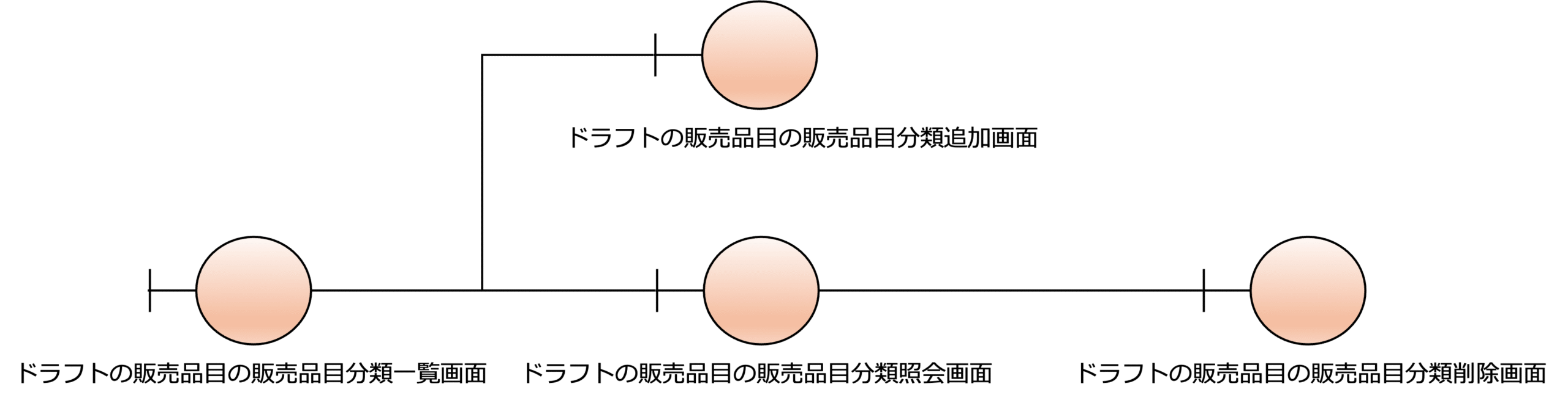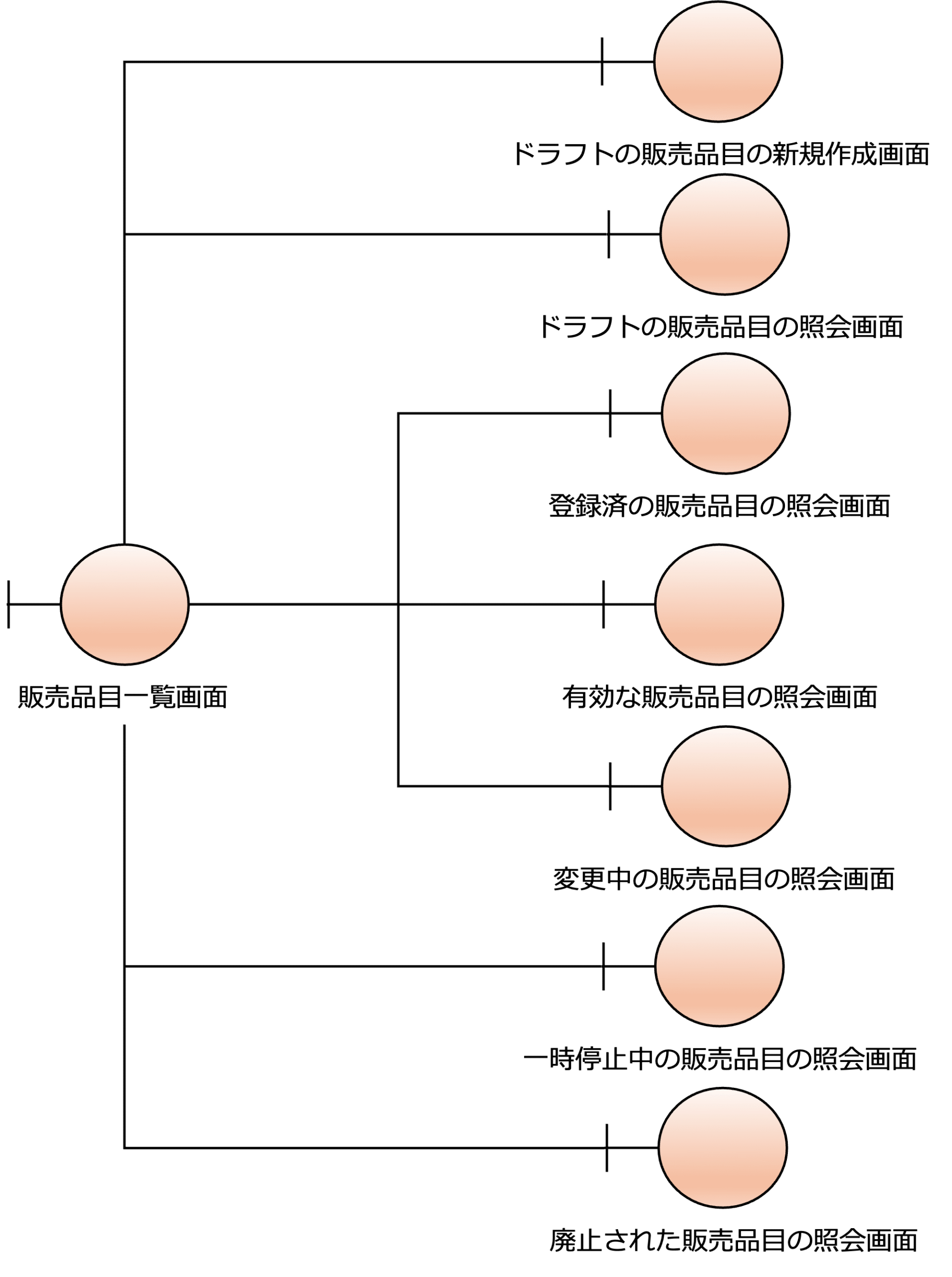 次の図は、販売品目の画面構成の設計の例です。