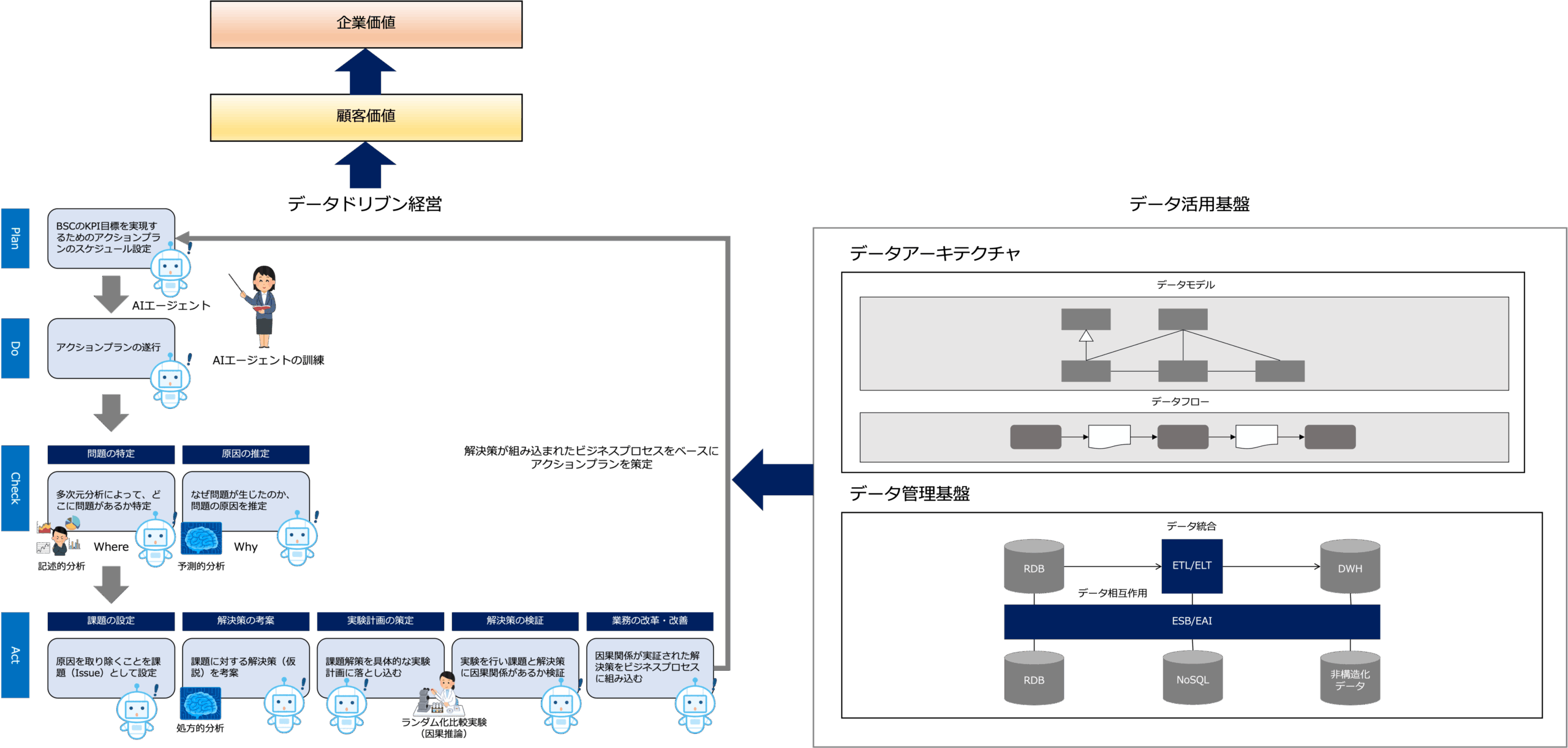 弊社では、データ活用基盤を構築する目的は、データドリブン経営を実現し顧客価値や企業価値を上げることだと考えています。